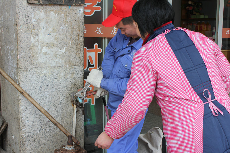 圖為集團志愿者為濱海鏡海社區居民上門(mén)免費維修水管