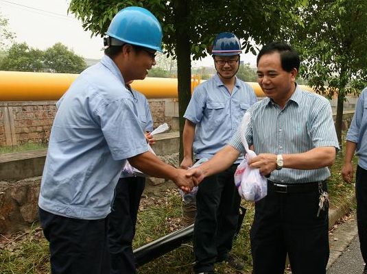 圖為集團單總經(jīng)理慰問(wèn)紹興水處理公司機修員工