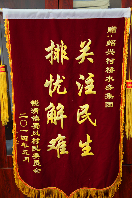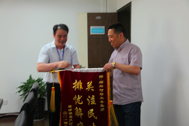 5月27日下午,錢(qián)清鎮蜀風(fēng)村徐萬(wàn)銘書(shū)記專(zhuān)程來(lái)到集團公司,送來(lái)一面“關(guān)注民生,排憂(yōu)解難”的錦旗,感謝集團公司幫助他們解決困擾多年的夏季高峰期間供水低壓“老大難”問(wèn)題。