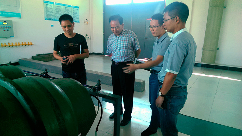 圖為倪阿泉董事長(cháng)在供水公司鳳凰山泵站檢查工作