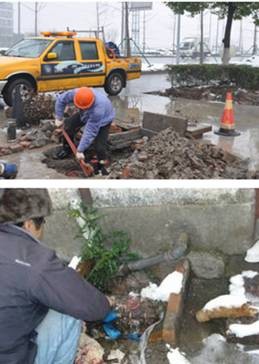 “稽山路和錢(qián)陶公路交界處DN100閥門(mén)冰裂引起3家企業(yè)停水;興越路、裕民路與金柯橋大道交叉口兩只DN300的閥門(mén)破損可能引起周?chē)髽I(yè)及居民用戶(hù)停水4小時(shí);華舍、齊賢靈芝片因管網(wǎng)尚未改造老化嚴重,多處水表、水管凍裂……”,一一個(gè)“三來(lái)”搶修的信息,個(gè)個(gè)都敲在搶修人員的心上,為確保用戶(hù)能盡快恢復用水,公司搶修人員從元旦開(kāi)始就沒(méi)有休息過(guò)。車(chē)輛不夠,就動(dòng)用三輪車(chē)、私家車(chē);人手不夠,就加班加點(diǎn)。搶修人員們抱著(zhù)“不處理完手中任務(wù),絕不休息”的念頭,冒著(zhù)紛飛的大雪,刺骨的寒風(fēng),一直奮戰到深夜,“早一秒修好,就早一秒通水”,供水搶修人員以實(shí)際行動(dòng)踐行服務(wù)承諾,保障了廣大用戶(hù)的安全用水。