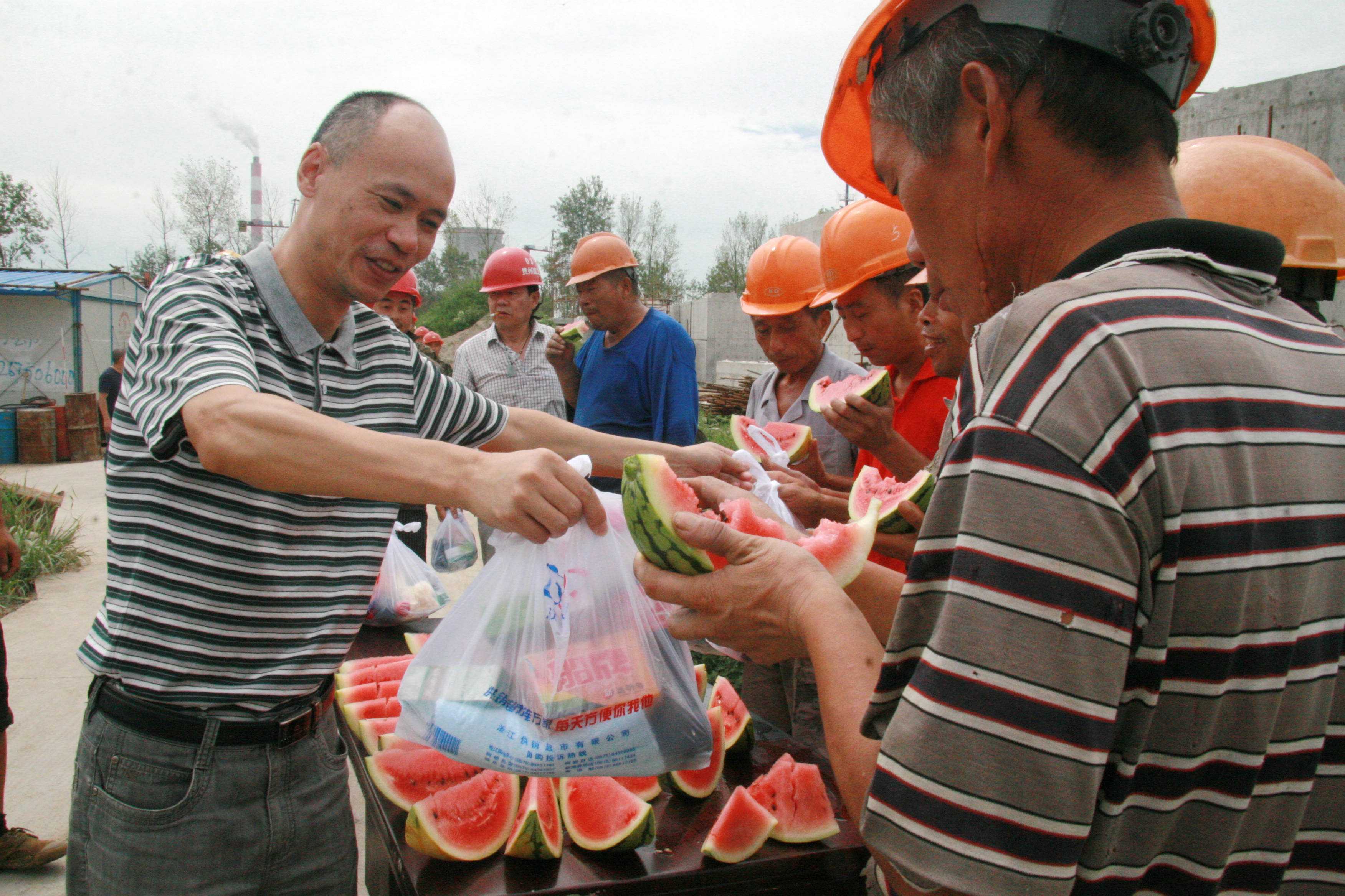 巾、十滴水、西瓜等防暑降溫慰問(wèn)品,并叮囑他們在工作中要注意