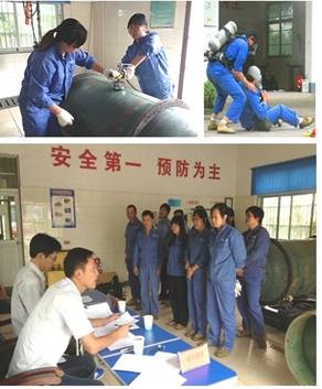 本次演練分空氣呼吸機正確佩戴使用和瓶身、針型閥應急堵漏操作兩個(gè)項目進(jìn)行,參演人員在現場(chǎng)模擬出的緊張氛圍中都能井然有序、有條不紊地完成全套動(dòng)作。通過(guò)本次液氯演練,提高了值班員對突發(fā)事故的分析應對處理能力,取得了較好的效果。