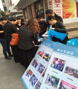 為配合小區污水管網(wǎng)改造工程項目,3月27日,公司組織人員在錢(qián)清永通花園、華清住商樓門(mén)口設攤宣傳,熱情地向居民介紹“五水共治,治污先行”方針政策,倡導居民對亂排放、違規排放的行為進(jìn)行監督,讓居民意識到即將動(dòng)工的雨污分流小區是一項優(yōu)環(huán)境惠民生的工程。
