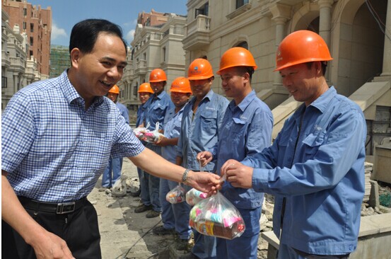 7月23日上午,集團公司總經(jīng)理單寶子在公司董事長(cháng)谷連森、總經(jīng)理李葉茂等領(lǐng)導的陪同下,前往柯橋城區湖畔花園和漓渚鐵礦供水管網(wǎng)施工現場(chǎng),慰問(wèn)堅守崗位的一線(xiàn)職工,為他們送上了消暑飲料及毛巾等防暑用品,并叮囑大家在高溫酷暑下盡量錯時(shí)作業(yè),注意做好防暑措施。