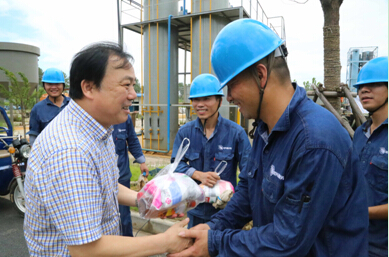 723,集團黨委副書(shū)記高小林到公司中試現場(chǎng)及泥處理車(chē)間慰問(wèn)一線(xiàn)職工,送上毛巾、消暑飲料等防暑用品。