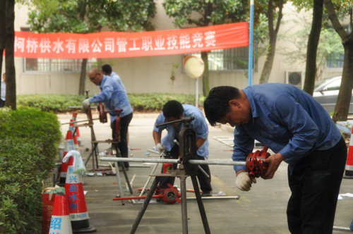 比賽分理論考試和實(shí)踐操作兩部分。理論考試涉及制圖、水力學(xué)、管材、管網(wǎng)管理、施工、安全等知識,實(shí)踐操作包括施工圖紙識讀、施工方案的編制、管道工程量的計算和管道的安裝等。此次職業(yè)技能競賽,全面檢驗了職工的崗位技能綜合素質(zhì),促進(jìn)了供水搶修技能的提升。