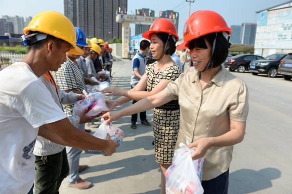 慰問(wèn)現場(chǎng),成水鳳一行向奮戰在一線(xiàn)的施工人員送上防暑用品,與工人們握手,詢(xún)問(wèn)工人工作情況和工地的防暑降溫工作,對工人們的辛苦奉獻表示感謝,還特別叮囑工人一定要注意防暑降溫,合理安排施工時(shí)間,在安全的前提下保質(zhì)保量地完成施工任務(wù)。