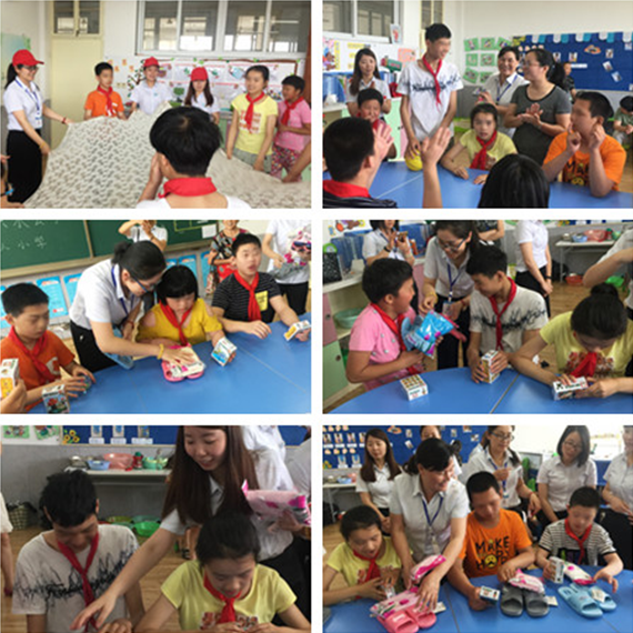 在學(xué)校老師的帶領(lǐng)下,“愛(ài)心媽媽”和黨員志愿者們陪伴特殊孩子們一起參與躲鯊魚(yú)、網(wǎng)布傳球和擊鼓傳花等互動(dòng)游戲,并為孩子們送去了住校用的拖鞋、毛巾等物資,用愛(ài)心給孩子們帶去歡笑,給予他們溫暖與關(guān)懷。