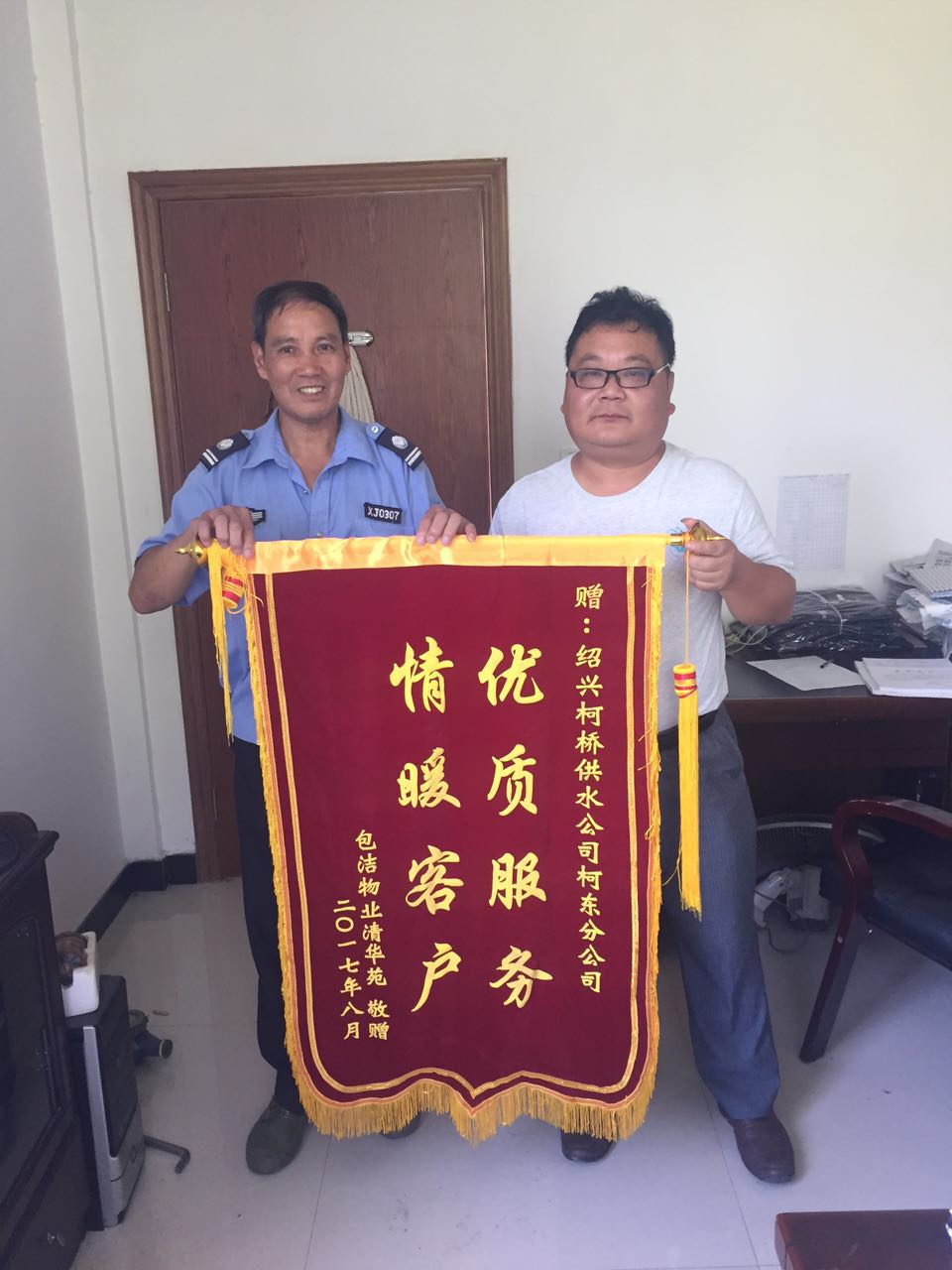 8月25日,平水鎮清華苑包潔物業(yè)專(zhuān)程送來(lái)錦旗,感謝柯東分公司提供的優(yōu)質(zhì)服務(wù)。