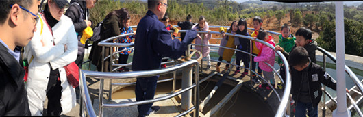 當天下午,王壇水廠(chǎng)迎來(lái)了來(lái)自魯迅小學(xué)的30多名學(xué)生、家長(cháng)和教師,在水廠(chǎng)工作人員的帶領(lǐng)下,30多名參觀(guān)者參觀(guān)了反應池、過(guò)濾池、清水池、化驗室等制水場(chǎng)地,見(jiàn)證了自來(lái)水從混濁到清澈的“出生過(guò)程”, 直觀(guān)的了解了從“原水”到“出廠(chǎng)水”的濁度變化有多大,水里面的雜質(zhì)是怎樣分離出來(lái)的,最后輸到家里的“自來(lái)水”是否達到標準……,并現場(chǎng)觀(guān)看了化驗員對原水和出廠(chǎng)水進(jìn)行水質(zhì)檢測。參加“探秘”的小學(xué)生們還親身體驗了色度比對、PH值測試等小實(shí)驗,通過(guò)現場(chǎng)參觀(guān),讓大家了解了自來(lái)水生產(chǎn)的全過(guò)程,增強了節水、護水意識。